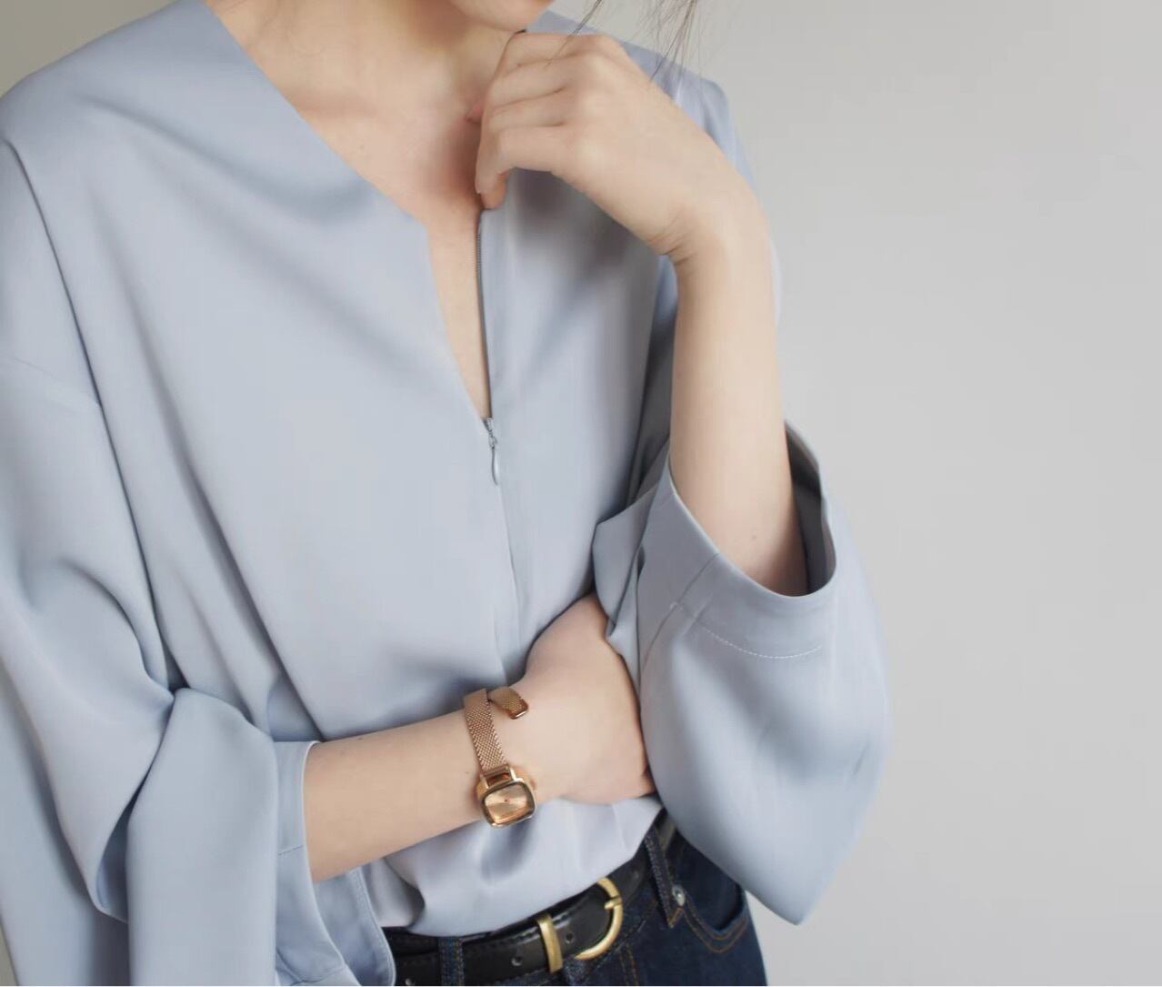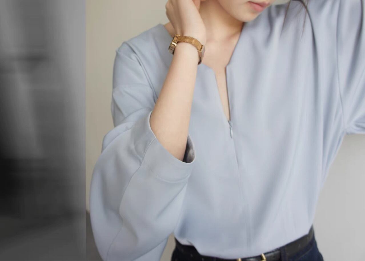 ワイシャツ Vネック 九分袖 体型カバー トップ レディース 韓国風 おしゃれ 着回し 通勤