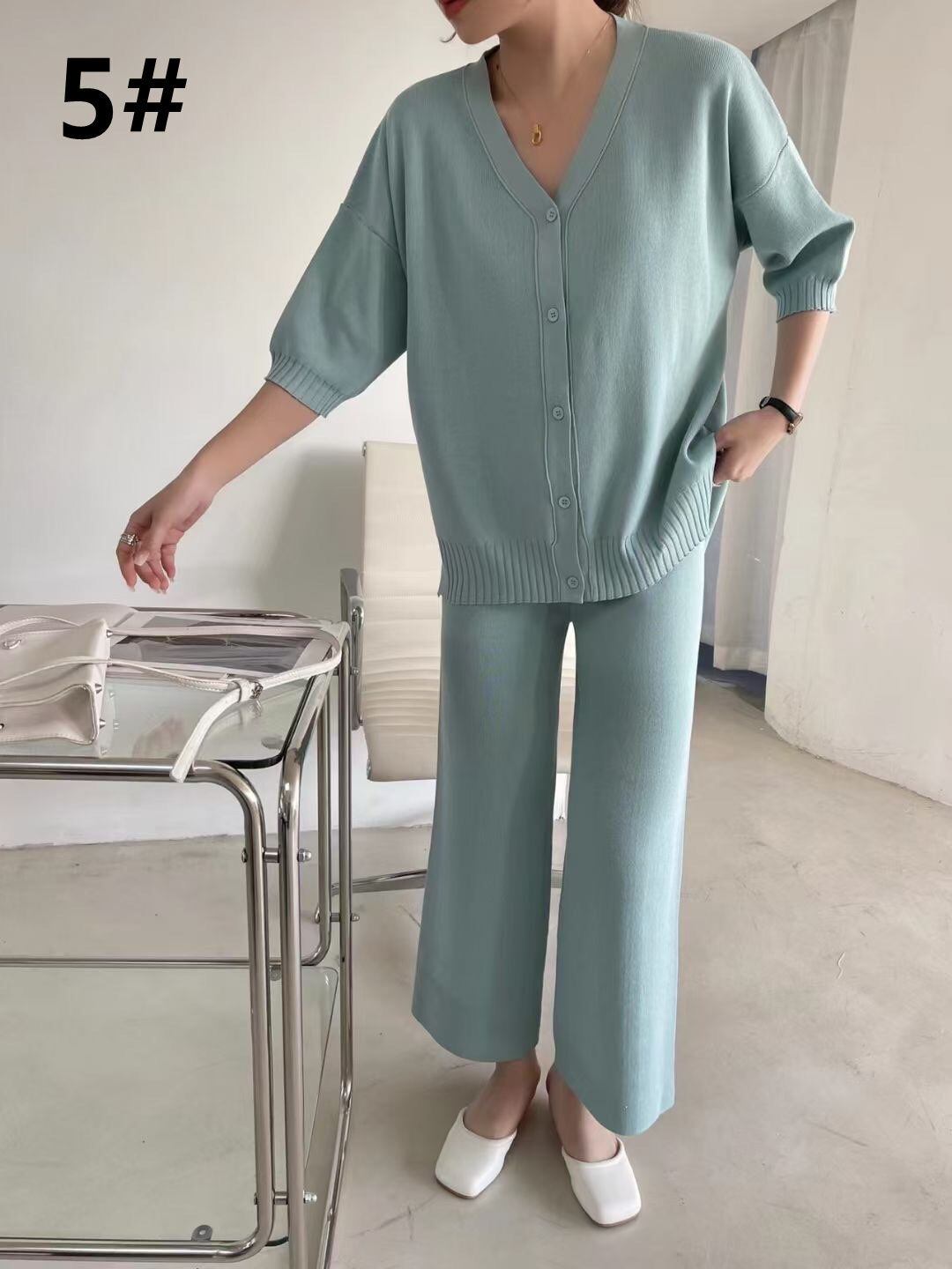 2点セットアップ Vネック 半袖 着回し カジュアル トップス ワイドパンツ おしゃれ