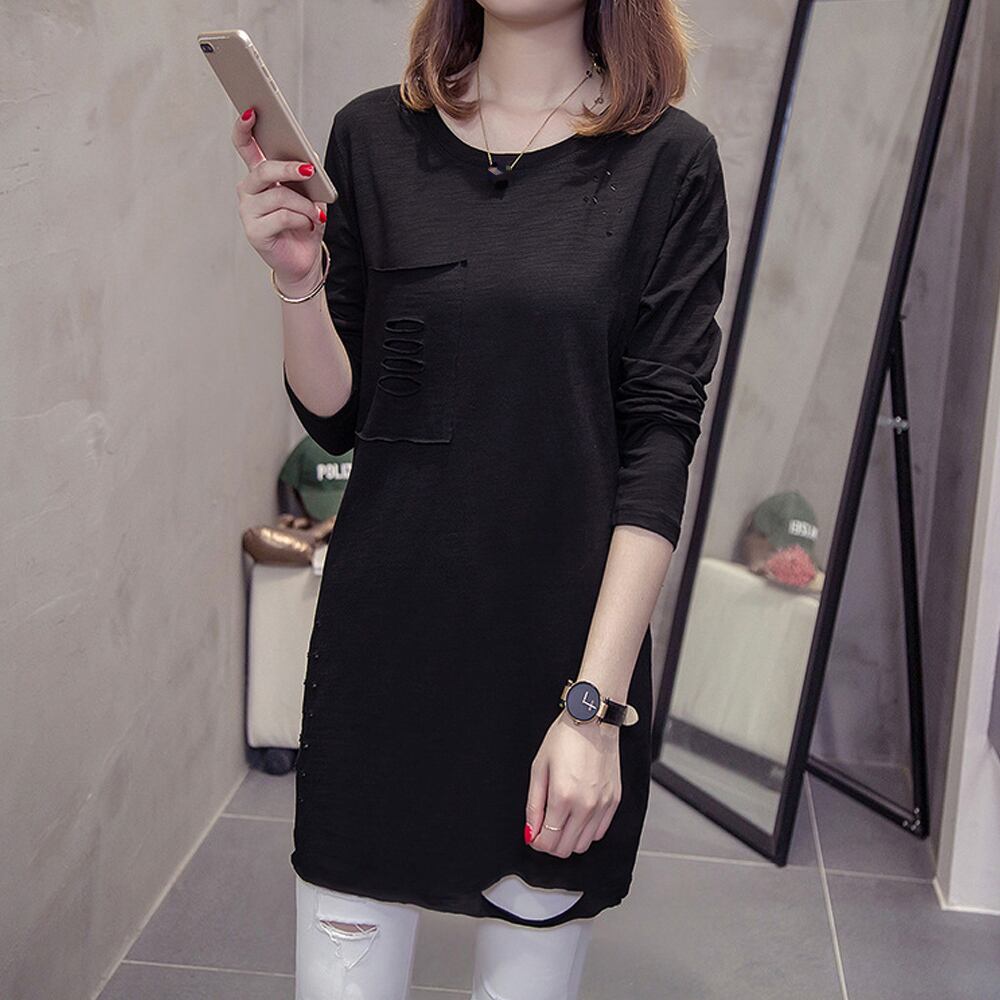 ロングカットソーゆったり カジュアル トップス ベーシック 薄手 プルオーバー ビッグTシャツ ロングtシャツ白 ロンティースエット