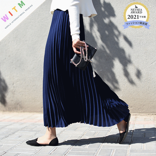 シアースカート プリーツスカート マキシ丈スカート ウェストゴム レディース 全18色