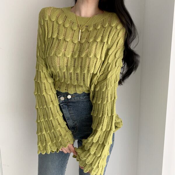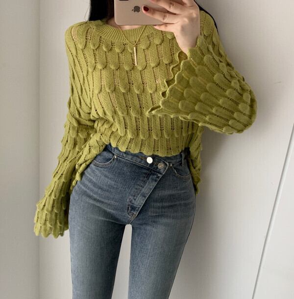 セーター ニットトップス フレア袖 韓国風 レディース 大人可愛い トレンド