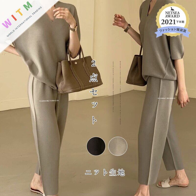カットソー ズボン 2点 セットアップ 9分丈パンツ トレンド カジュアル 韓国風 上品