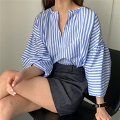 人気ブラウス ブラウス Vネック パフスリーブ レディーストップス 大人可愛い