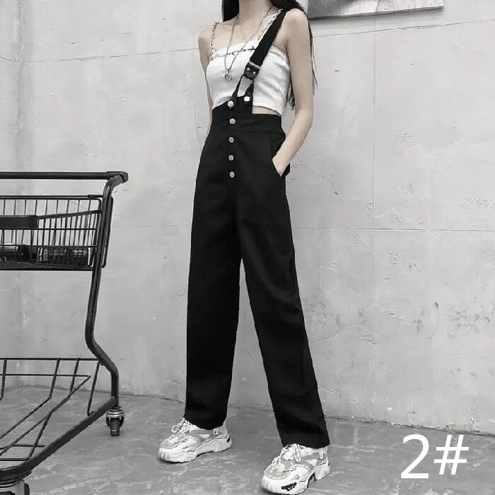 デニム サロペットパンツ ロング丈パンツ レディース ハイウエスト 体型カバー カジュアル