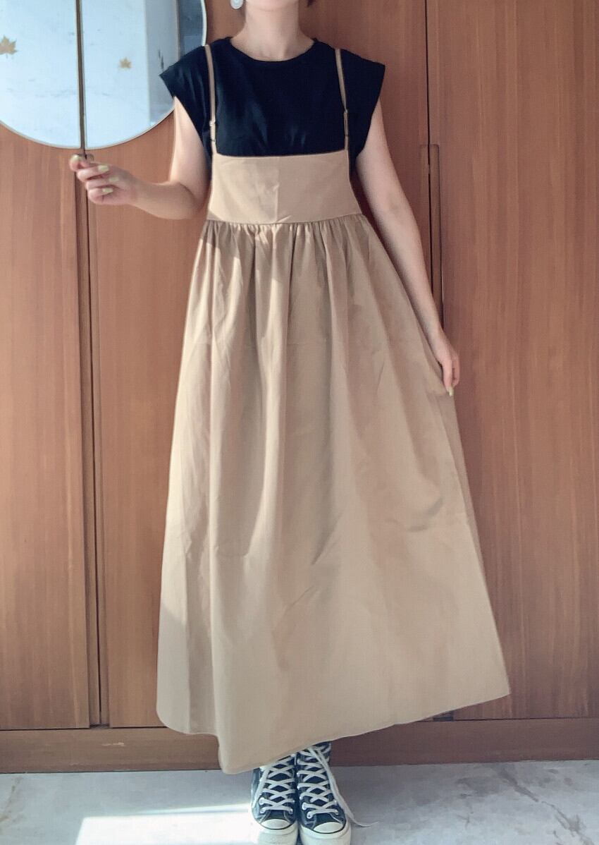 新作 サロペットワンピース サロペットスカート ロングワンピ マキシ丈 レディース 体型カバー