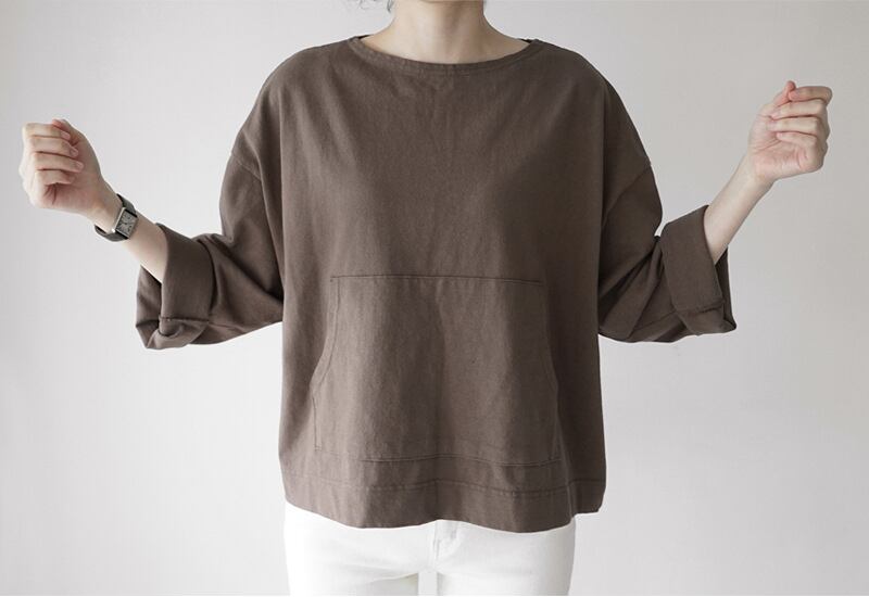 どんなボトムにも合わせやすく体型カバーにも効果的。