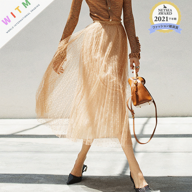 春夏新作 チュールスカート シアースカート ロングスカート プリーツ 水玉柄 レディース 着回し