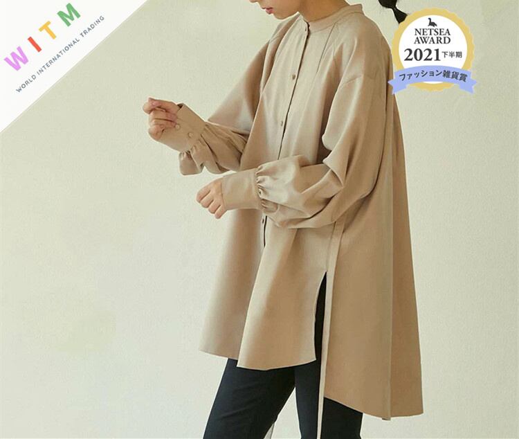 春新作 ブラウス 人気シャツ スリット 長袖 体型カバー レディーストップス ミドル丈