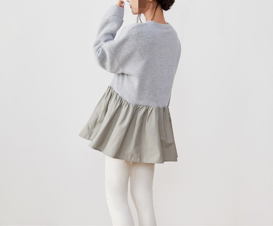 トップス プルオーバー 長袖 異素材 レイヤード 重ね着風 レディース カジュアル