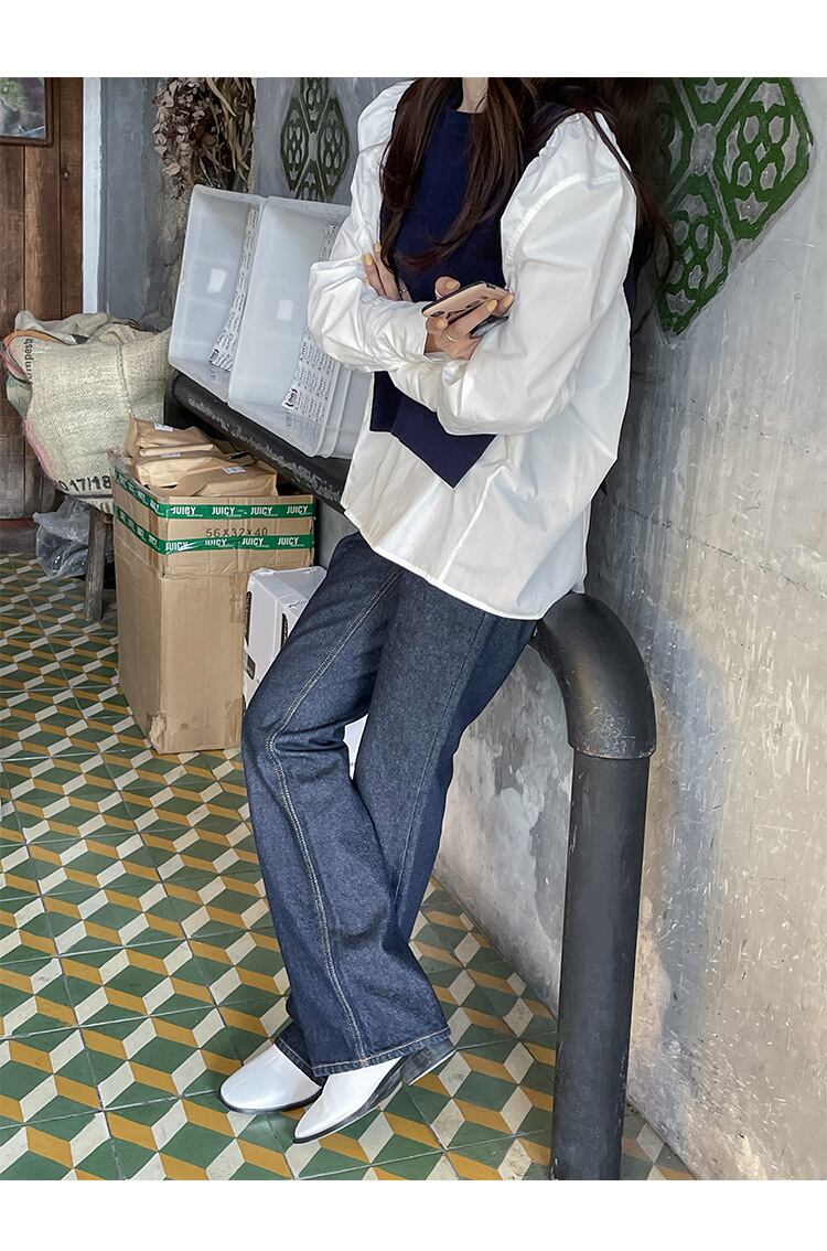 スカートでもパンツでも合わせやすいので一着持っていると大活躍するトップスです。