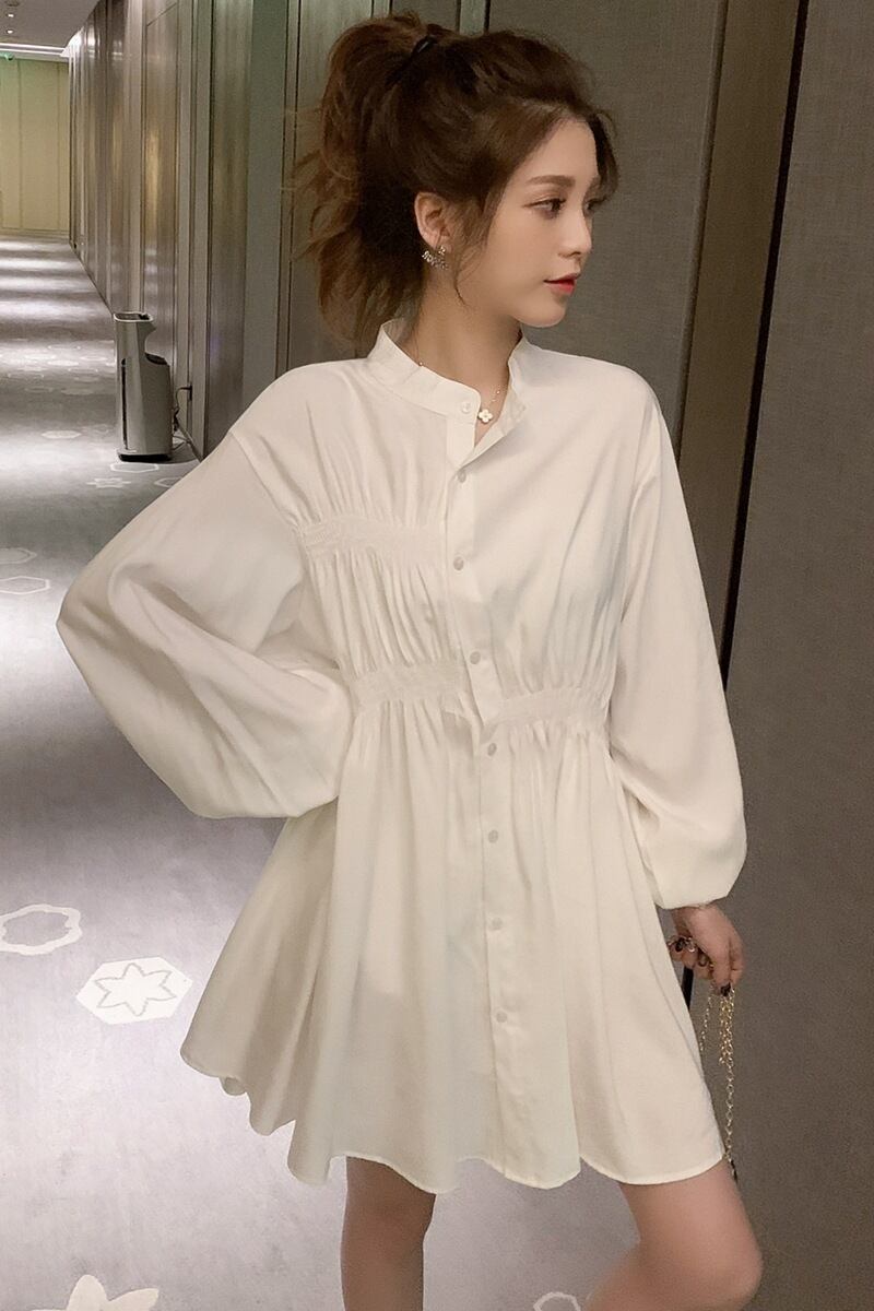 新作 シャツワンピース ブラウス チュニック 長袖 レディース 立ち襟