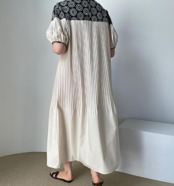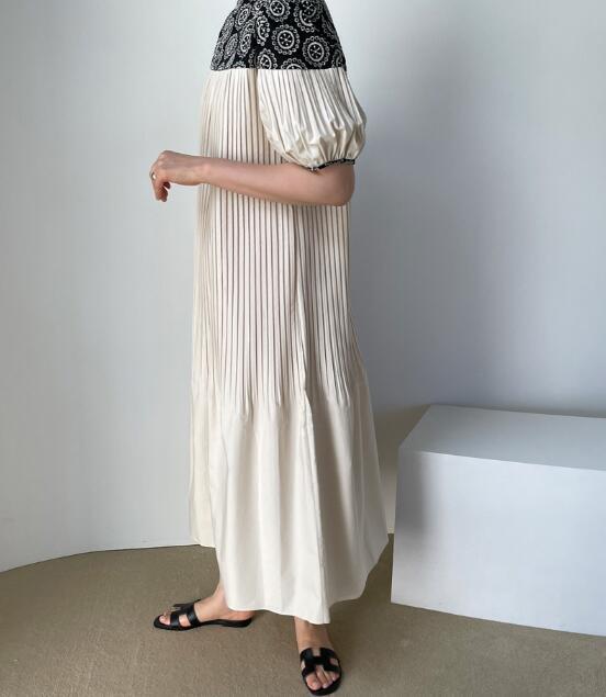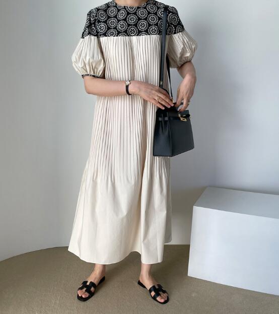ワンピース ロング丈ワンピース プリーツワンピース パフスリーブ 韓国風 体型カバー