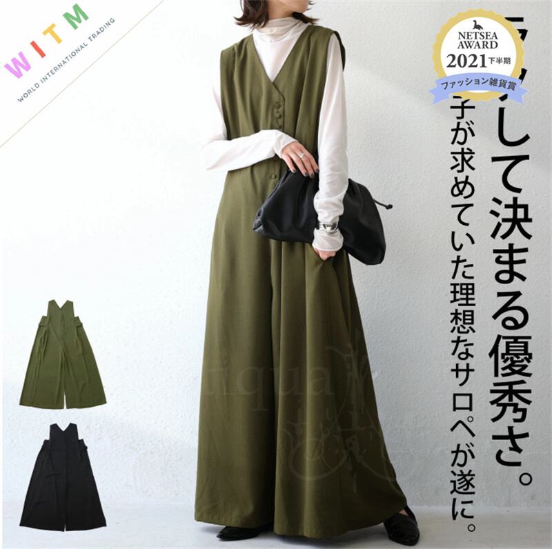 春夏新作 サロペットパンツ ロング丈パンツ ワイドパンツ マキシ丈 レディース 体型カバー カジュアル