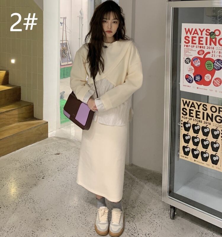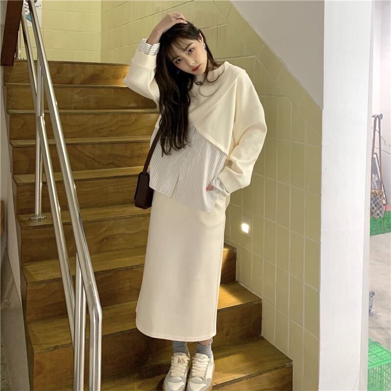 プルオーバー ロングスカート 2点セットアップ フェイクレイヤード 韓国風 カジュアル