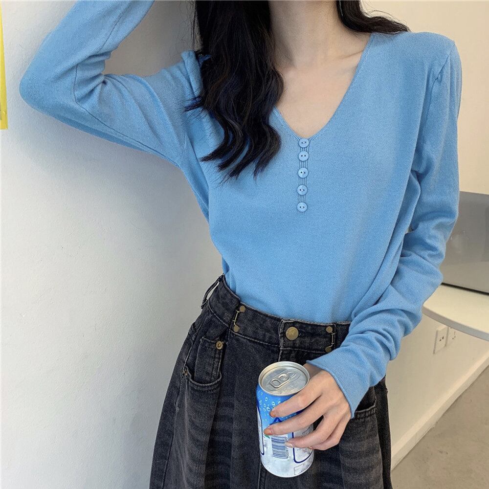 切りっぱなし ニットセーター カジュアル 長袖 ニットソー ボタン飾り 着やせニット きれいめ 秋冬 無地