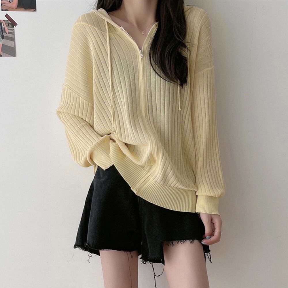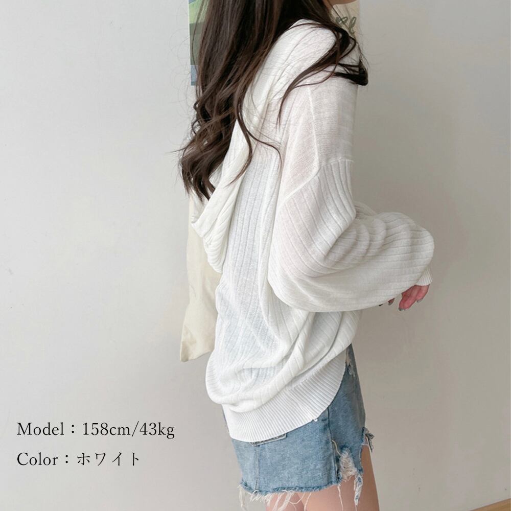 シアーニットパーカー レディース UV 紫外線対策 Vネック 羽織トップス カジュアル 着やせ サマーニット 前開き 無地