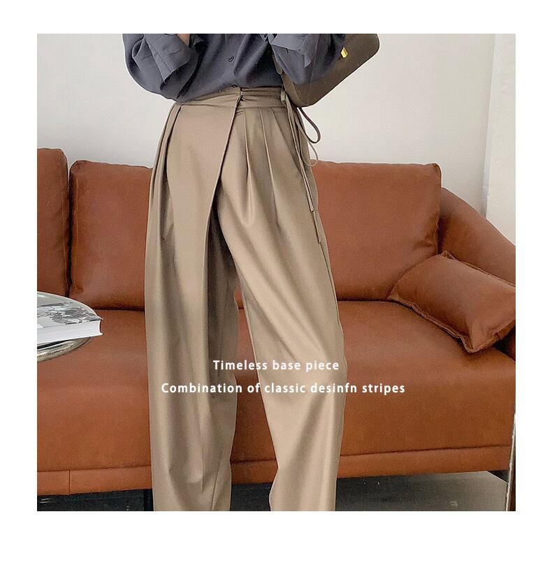 ワイドパンツ ロングパンツ ハイウエストズボン リボン付き レディース 着痩せ
