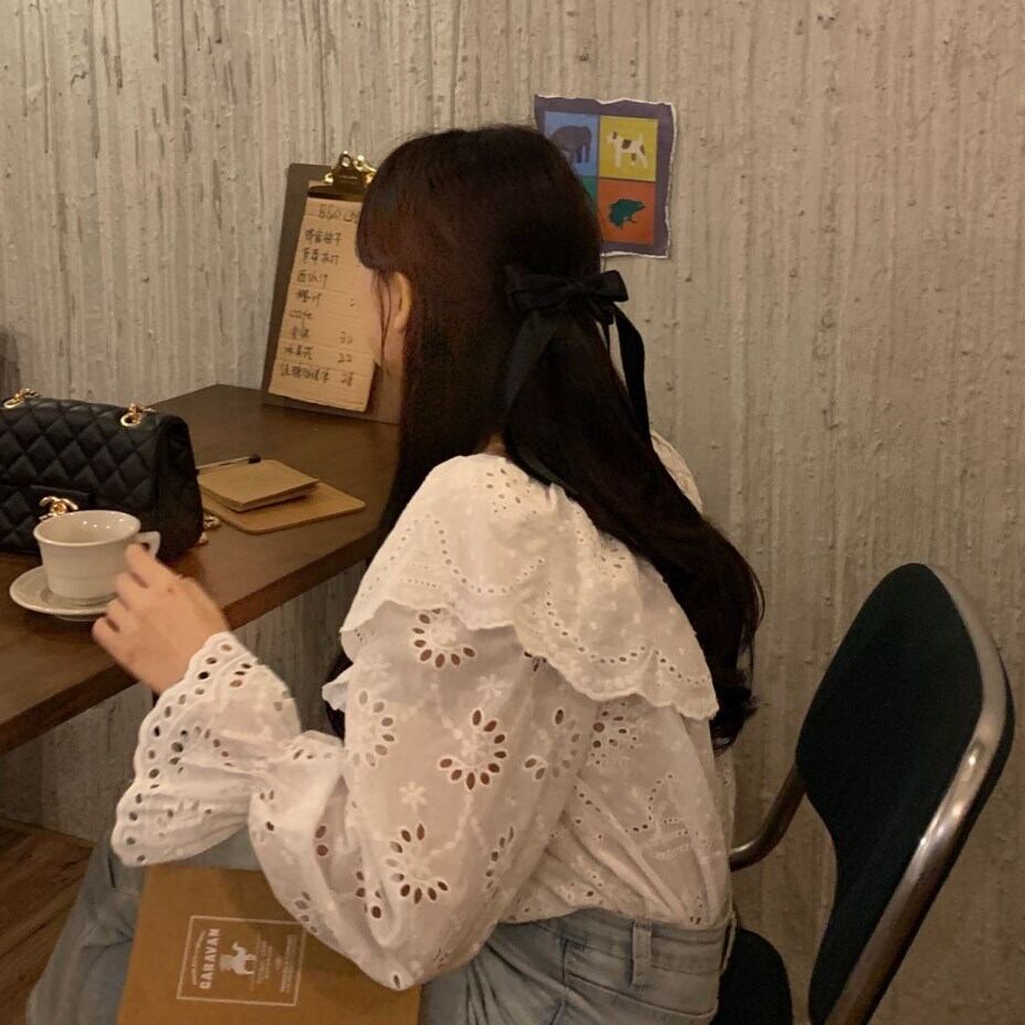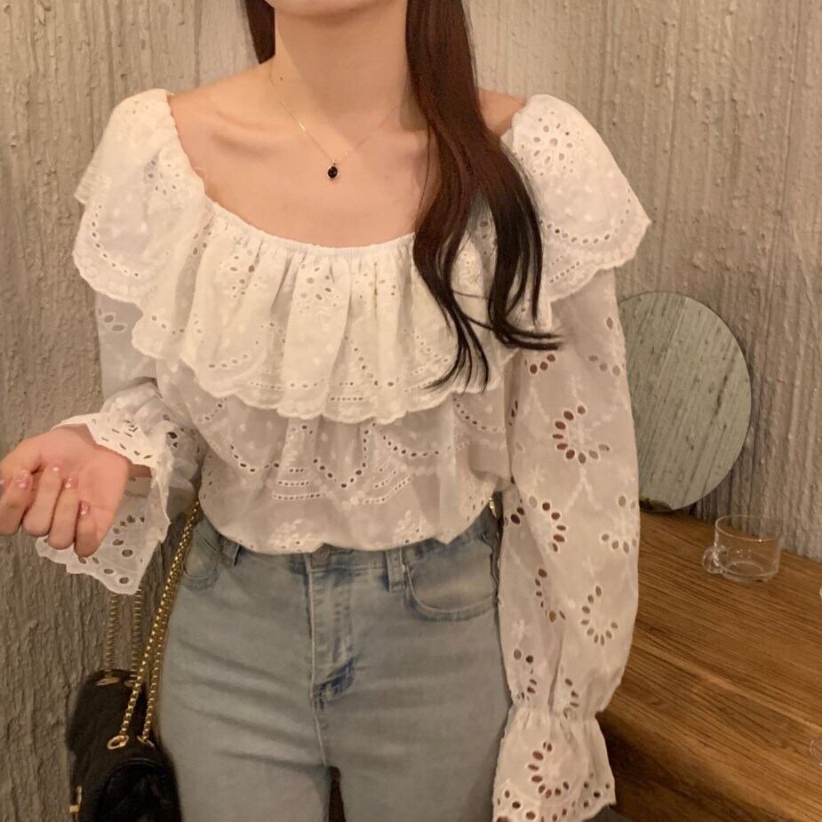 レースブラウス フレアブラウス トップス 透かし レディース 大人可愛い 着痩せ