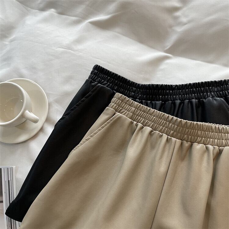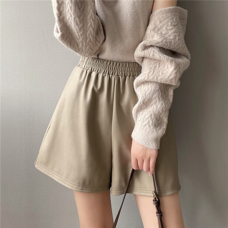 PU ショートパンツ レディース 2021年秋 新作 ゆったりする カジュアル ハイウエスト Aラインパンツ