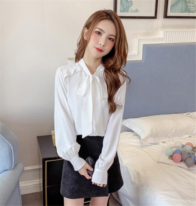 シャツ 蝶結び エレガント ニュースタイル 韓国版 長袖 トップス スリム