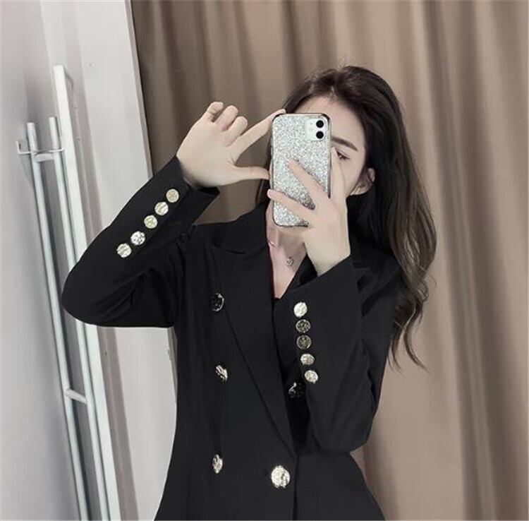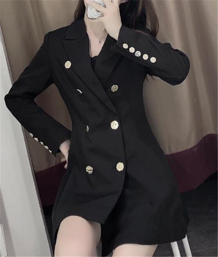 春 新スタイル 気質 スリム ブラック スーツドレス 女性 デザインセンス 大人気 ダブルボタン