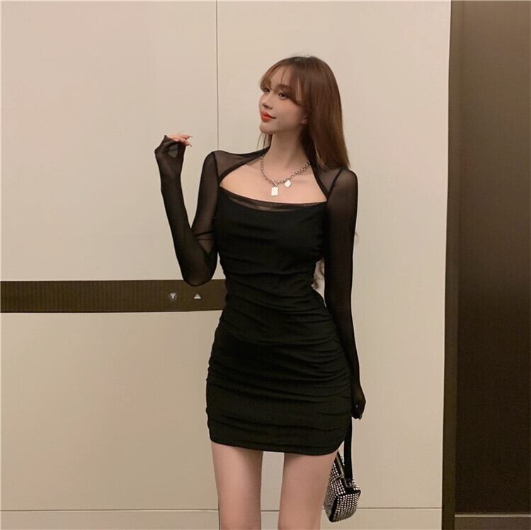 スクエアネック ライトラグジュアリー セクシー スリムフィット タイトスカート レーヨン