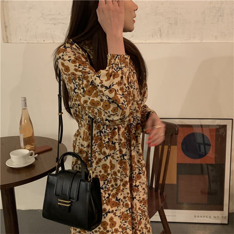 メス シフォン 上品映え ゆったりする 小さい新鮮な 気質 ロングスカート レトロ 長袖 フローラル