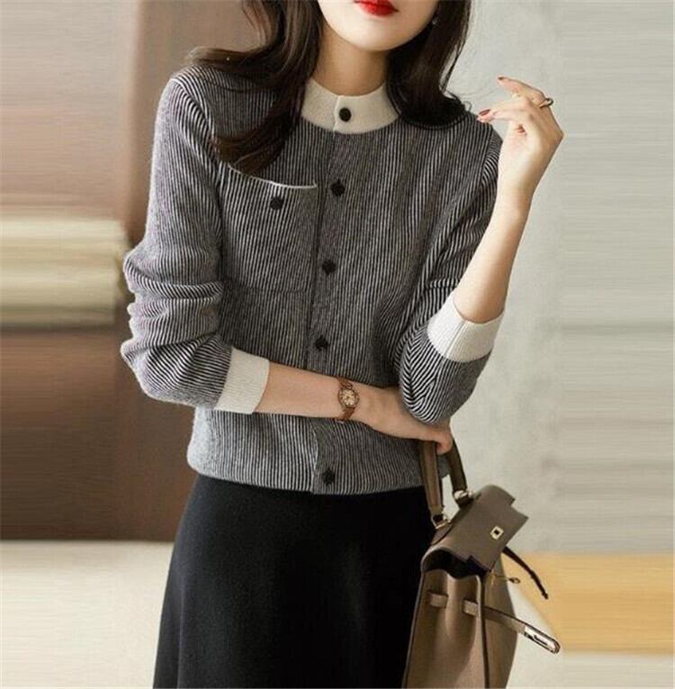 着映えが狙える ジャカード 快適である スリム トレンド ストライプ カシミア 長袖 sweet系 ニット