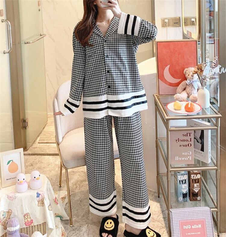 清純で人をうっとりさせる 韓版 千鳥格子 ラペル 長袖 ルームウェア セット sweet系 エレガント