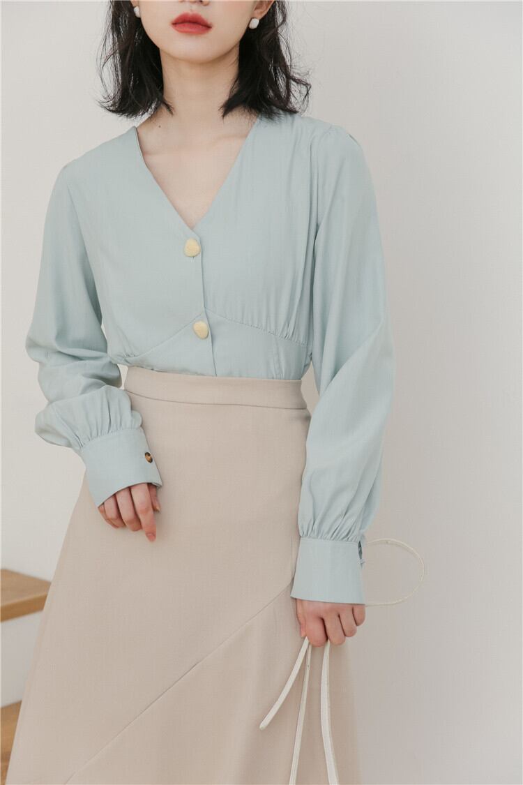 レディース トップス オシャレ Vネック エレガント シャツ スリムフィット シンプル