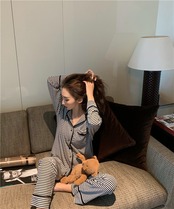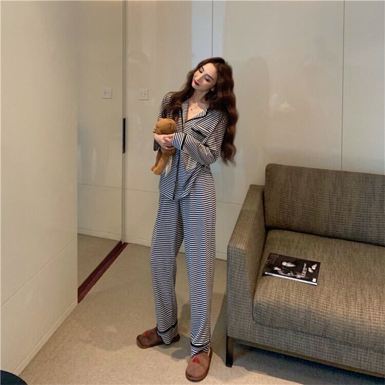 これからの季節に大活躍 春 秋 新品 ボーダー 長袖 ロングパンツ 単体ボタン ルームウェア セット