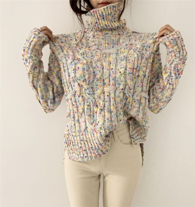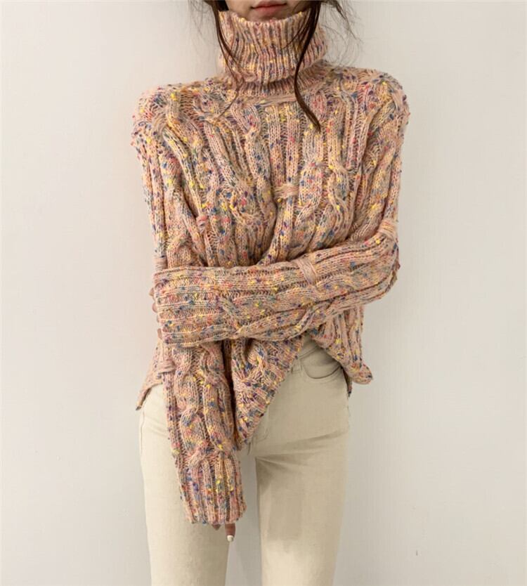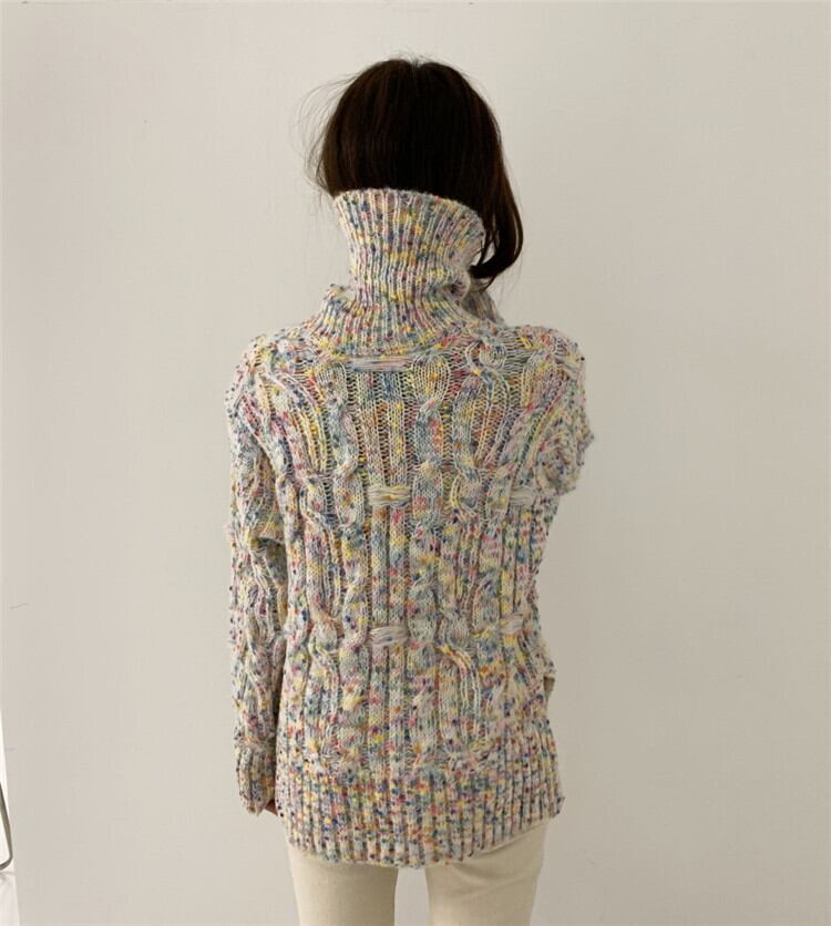 韓国ファッション 減齢 タートルネック 厚くする スノーフレーク ソフトガール ヘドオーバー セーター