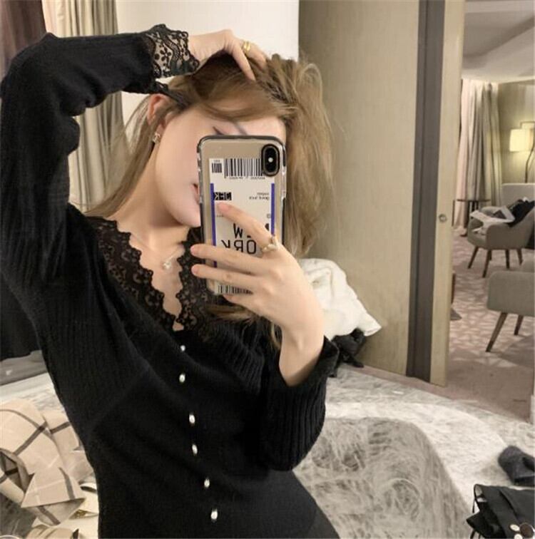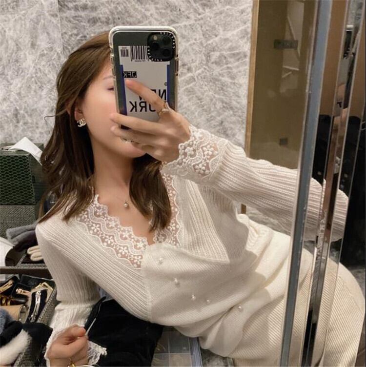 ウール ニット スリム レース 秋 冬 外国のスタイル 長袖 トレンド