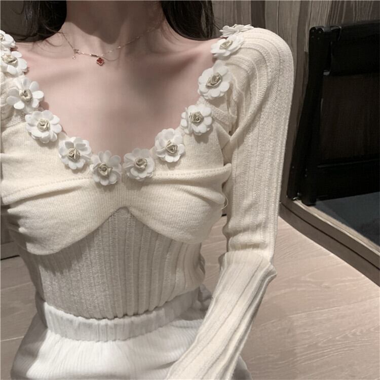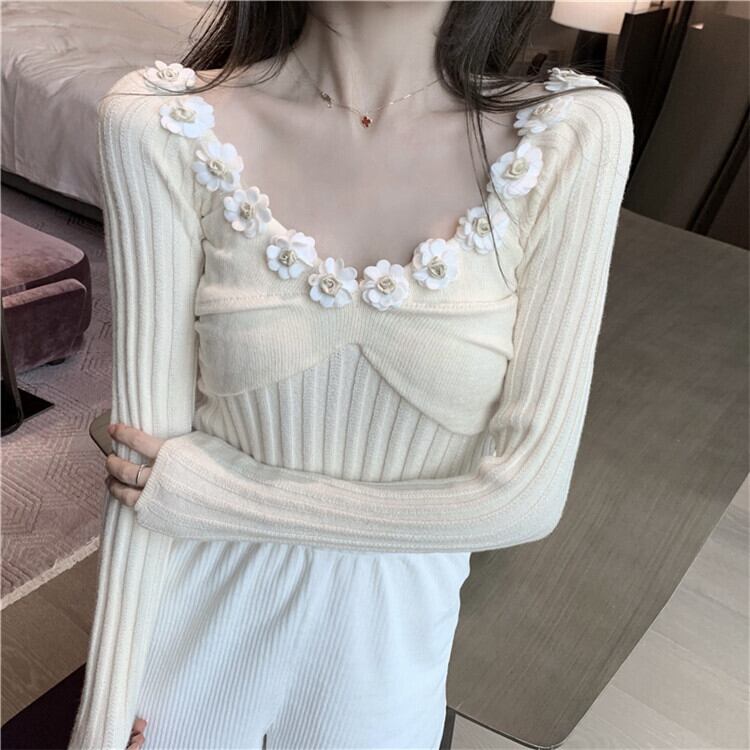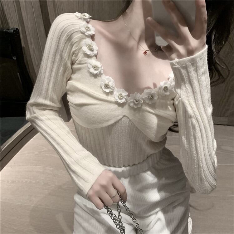 スリムフィット長袖 ニットショートスタイル ボトムシャツ セーター
