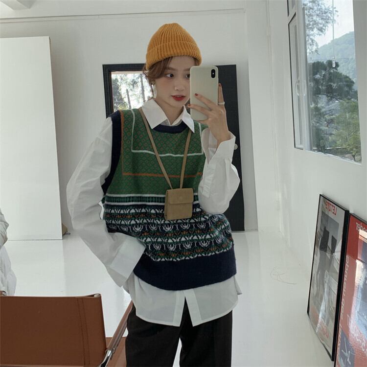 セーター ニットベスト ヒットカラー トレンド ラウンドネック