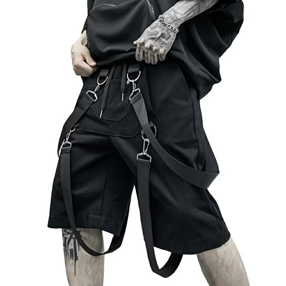 ハーフパンツ ベルト ブラック ボトムス ひざ丈 大きいサイズ ゆったり 伸縮性 ファッション アジアン カジュアル メンズ レディース ユニセックス 男女兼用 ルームウェア 変形 個性的 プレゼント 贈り物 室内 オールシーズン ダンス ヨガ お揃い シンプル ラフ コーデ ストリート ヒップホップ 学園祭 祭り